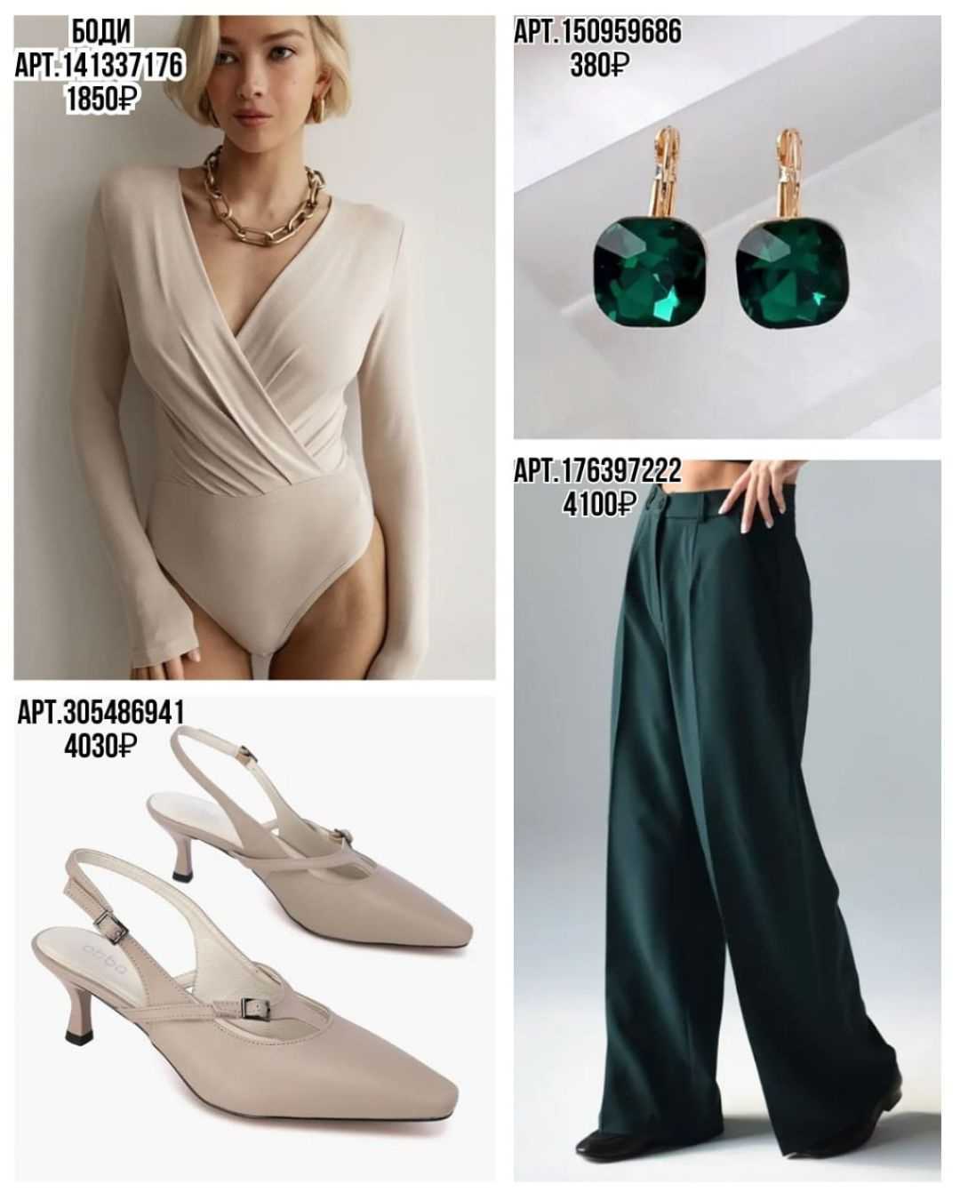 Мягкие светлые оттенки в сочетании с глубоким зелёным создают образ, который привлекает внимание утонченными деталями.